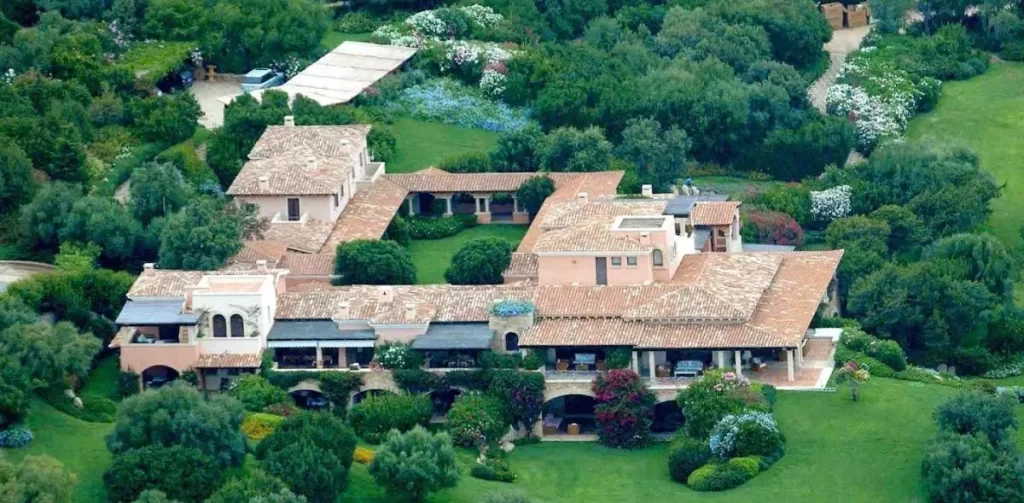 Nicknamed the “Palace of Wonders,” Villa Certosa spans 120 hectares of manicured grounds overlooking the Gulf of Marinella. It offers 4,500 square meters of living space, encompassing 68 principal rooms, numerous bungalows, and an array of leisure facilities designed to impress on a monumental scale. For decades, it stood as Berlusconi’s most famous property, playing host to heads of state, business magnates, and celebrities alike. Its reputation as both a political stage and a private retreat makes it an estate of historic as well as aesthetic significance.
